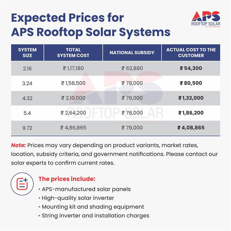 APS is one of the largest solar panel manufacturers in India. By combining advanced solar cell technology with high-quality panel materials, APS ensures long-lasting performance for its products. Let’s break down the price structure of APS Solar Panel Systems.